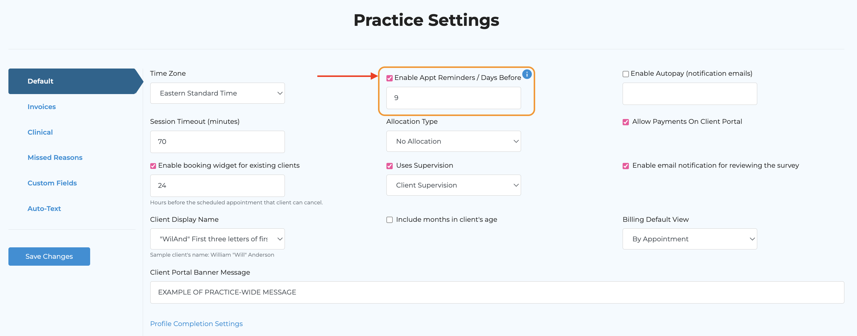 Turning Off Automatic Superbills for Specific Clients