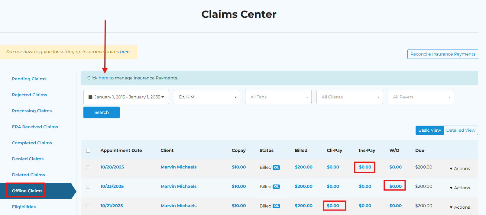 Once the offline claims feature is enabled and payers have been added, you'll want to record such payments effectively: