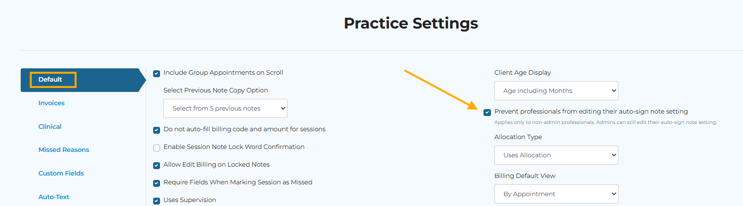 Prevent Professionals from Editing Their Auto-sign Note Settings