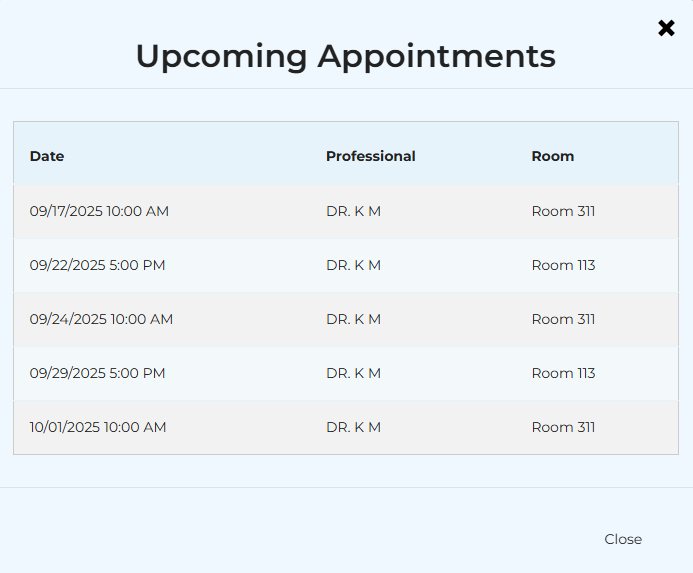 Now, clients can view a list of upcoming appointments by selecting the More button on the right-hand side of their Next Appointment on the client portal.